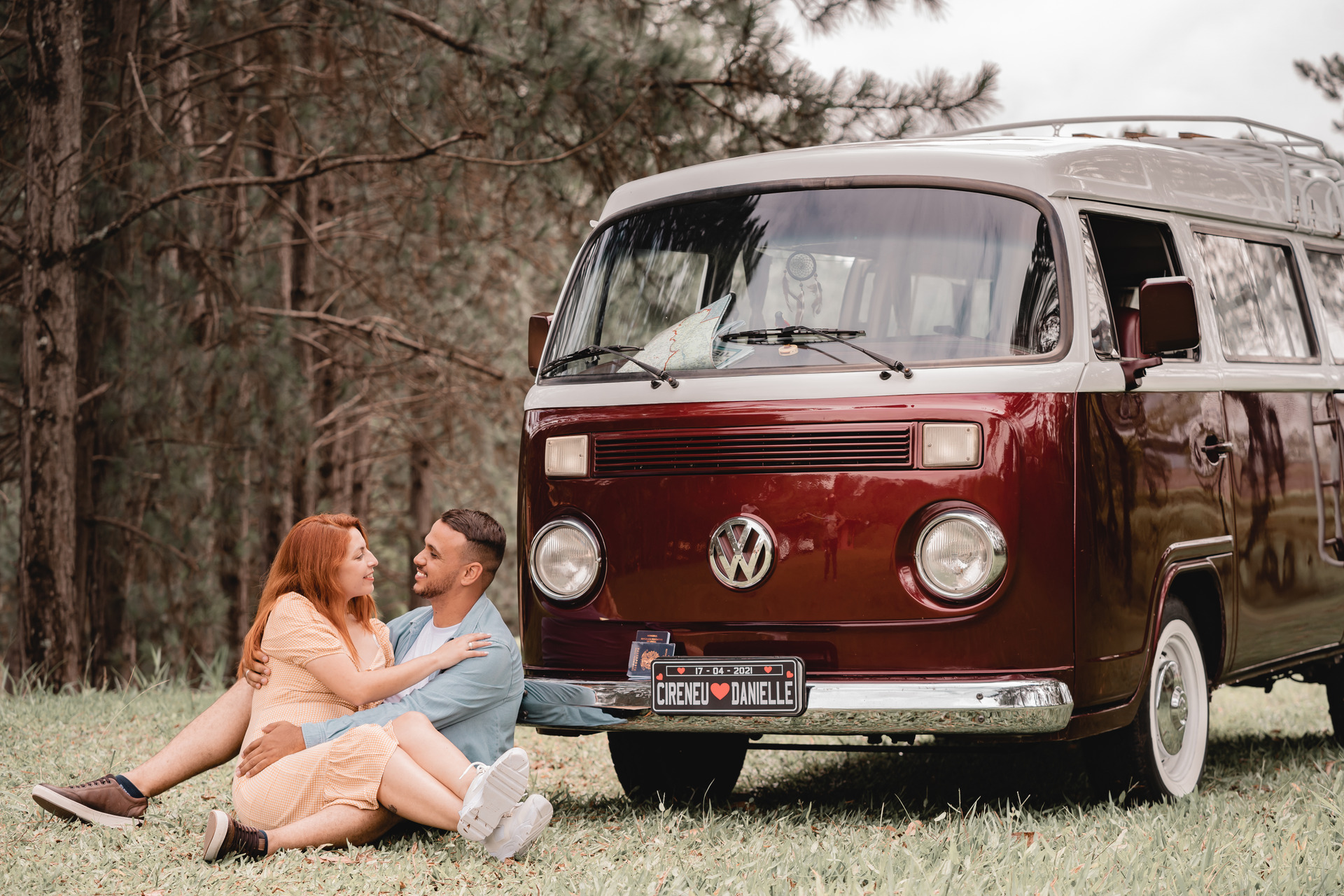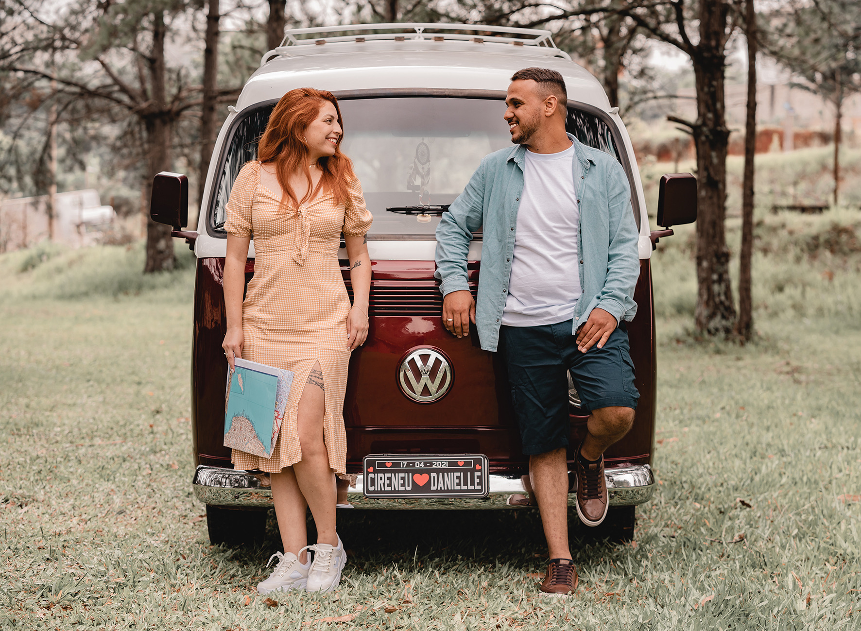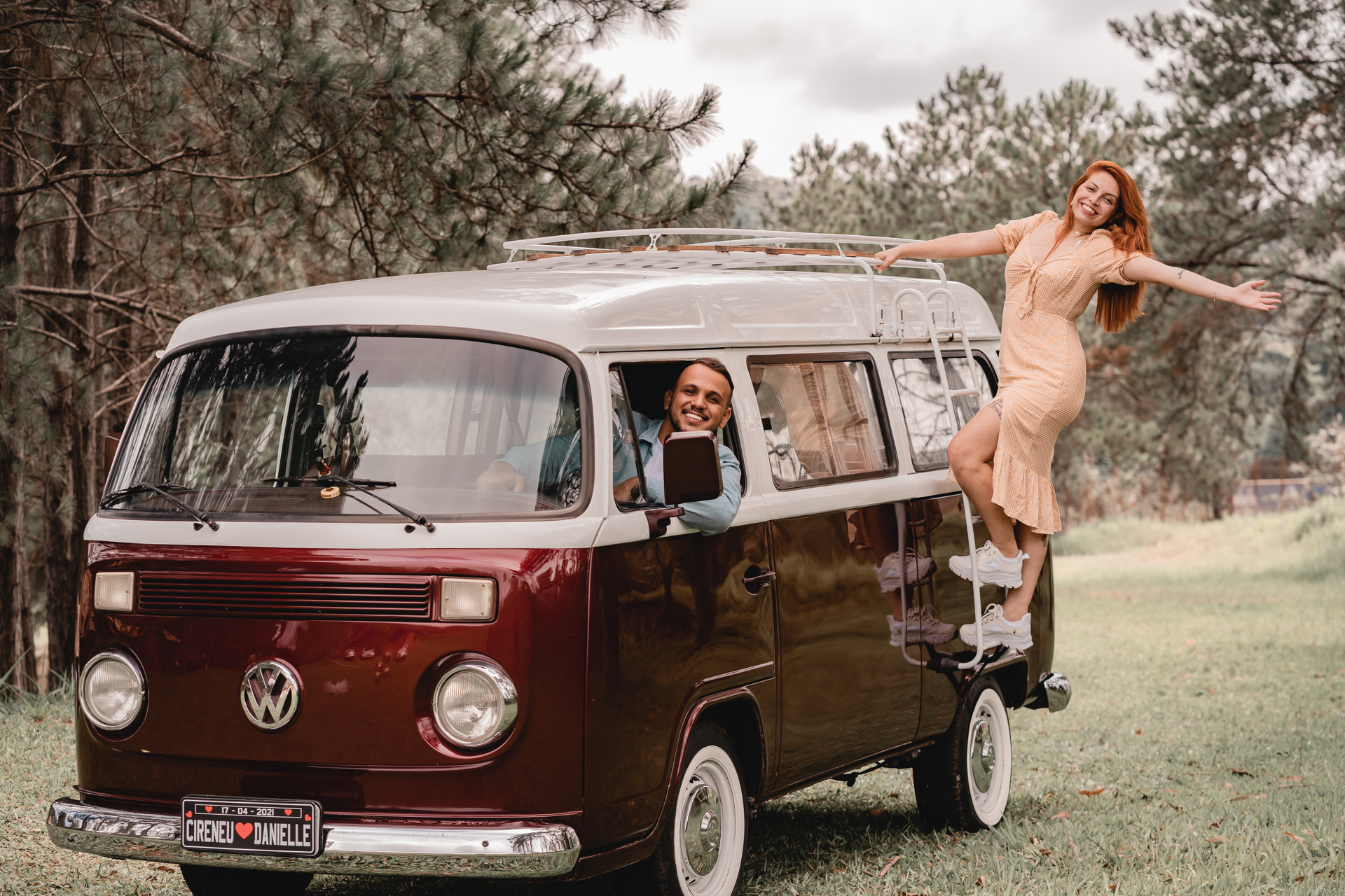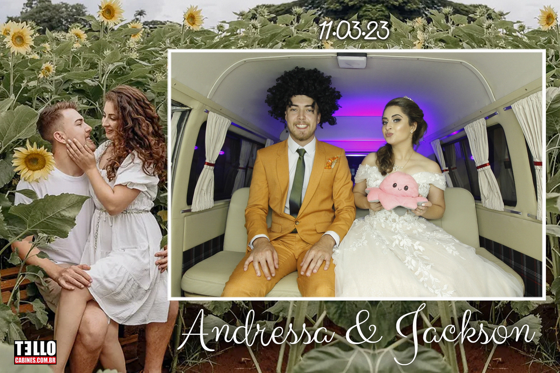 Você pode contratar ela como cabine de fotos, totem fotográfico com a kombi de fundo ou ela apenas como cenário.